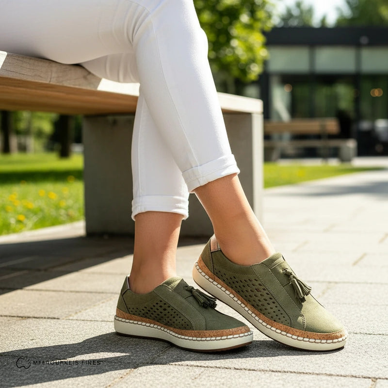 These comfort slip-on shoes are made for women who want easy movement, breathable design, and soft cushioning with every step. The flexible structure adapts naturally to the foot while the perforated sides provide fresh airflow that keeps you comfortable throughout the day. With a lightweight sole and supportive fit, they make walking feel effortless whether you're running errands or spending hours on your feet.