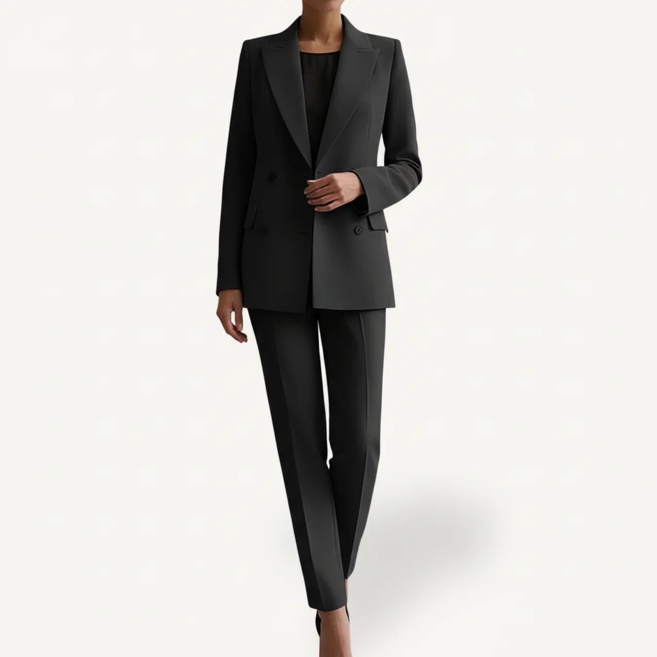 Women’s tailored suit set featuring a structured blazer and sleek trousers designed for modern sophistication, confidence, and effortless styling.